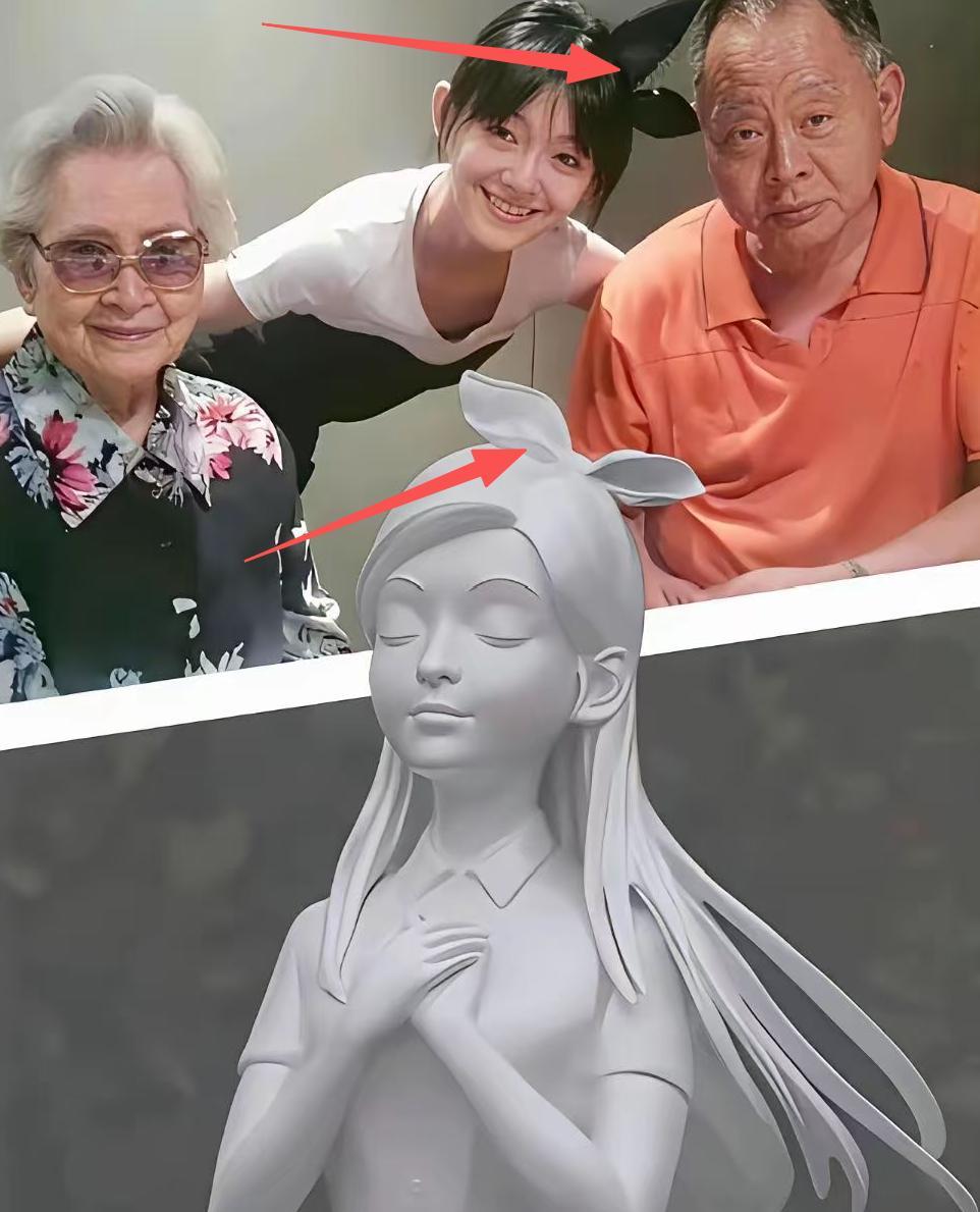 有细心网友扒出,雕像头上的发夹,是大S跟奶奶和父亲合影时,戴过的发夹。